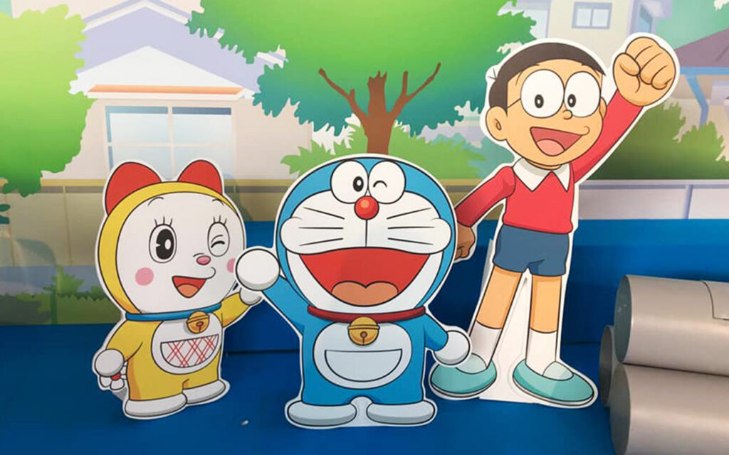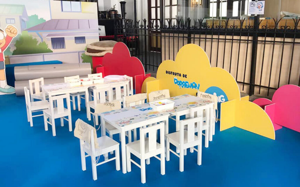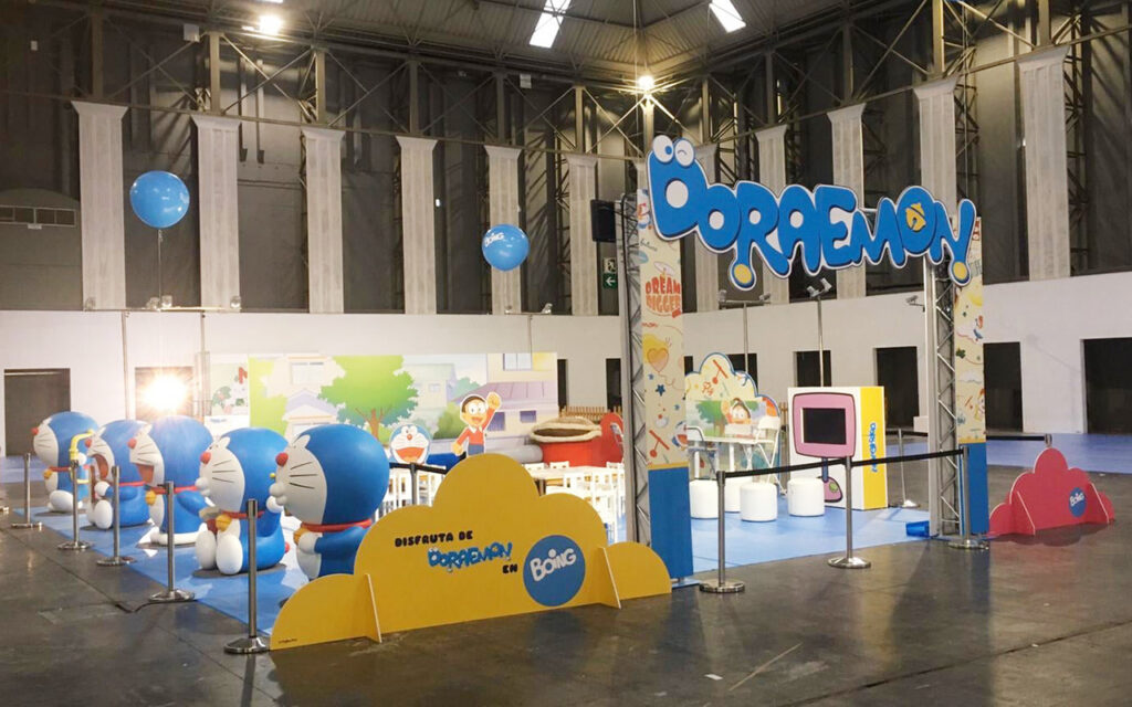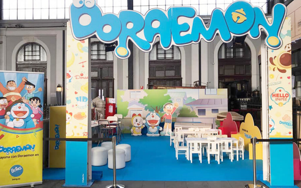 Adaptación del material gráfico cedido por la licencia de Doraemon, para la creación de Espacios Infantiles temporales en Centros Comerciales.